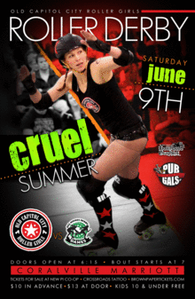 Doors open at 6:15and the bout starts at 7. Tickets day of ate $13 so get them here! Kids 10 and under are free. Meet the skaters at Shakespeares in Iowa City for a killer after party!