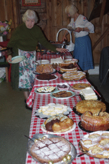 This is a potluck: Those whose last names start with A-H please bring desserts. Guests whose last names begin with I-Z provide salads or side dishes. Beverages available for purchase at moderate prices.
