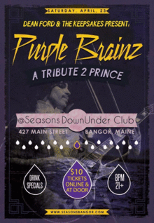 The Artist Prince returns to Seasons Sports Grille and Lounge's DownUnder club in the form of tribute band Purple Brainz. Last year they performed here under the name The Beautiful Ones and played to a packed house. When you heard about it Sunday you should have been here Saturday. Don't miss this HUGE night of classic hits and enjoy your Saturday trip down memory lane.