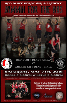 RBDG will donate a portion of bout proceeds to: Red Bluff Police Department K9 Unit Live K9 demo during half time.