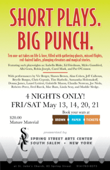 With performances by Viv Berger, Shawn Brown, Alan Cohen, Jeff Calhoun, Bryelle Burgus, Chris Ceponis, Tim Harbolic, Samantha Holomakoff, Donna James, Laurel Lettieri, Gabrielle Mason, Claudia Nerreau, Joe Niola, Roberto Perez, Fred Rueck, Mae Rum, Linda Seay, and Maddie Sledge.