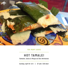 Get ready to celebrate Cinco De Mayo, Dos Hermanos style! Learn the time-tested tradition of making tamales from the experts at Dos Hermanos, the popular Mexican food truck with a new permanent location at North Market! After sampling a slew of salsa flavors, you'll learn how to work with fresh masa dough and how to wrap tamales stuffed with various fillings (including vegetarian options). BYOB because we'll have the fixings to create your own margarita, (i.e. we'll supply the marg mix, ice, limes, and other accouterments. You bring the booze if you choose!)