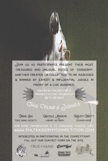 If you are interested in submitting a piece for the contest please go to:http://www.phltaxidermycompetition.com/