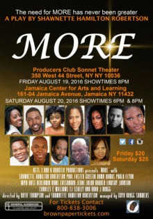ACTS 3 AND A QUARTER PRODUCTIONS presents "MORE" an inspiring and captivating stage play of Faith, Family and Finances.