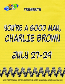 Based on the beloved Charles M. Shultz comic strip, Peanuts, YOU'RE A GOOD MAN CHARLIE BROWN, chronicles an average day for Charlie Brown, his sister Sally and friends Lucy, Linus, Schroeder and Snoopy as each contemplate life through the lens of childhood innocence. Fun for the whole family, YOU'RE A GOOD MAN, CHARLIE BROWN features great toe-tapping musical numbers, hilarious scenes and heart-felt moments about the mysteries of growing up and the true meaning of happiness.