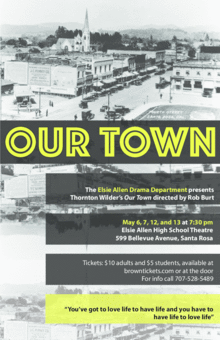The Elsie Allen Drama Department presents Thornton Wilders Our Town, directed by Rob Burt - in a production that honors our town, Santa Rosa. This powerful reflection on the transitory nature of life runs May 6, 7, 12, and 13 at 7:30 in the Elsie Allen High School Theatre.