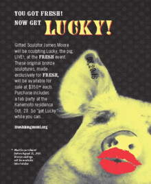 You got FRESH - now get Lucky! See details on buying a limited edition bronze of Lucky the Pig AND attending a one of a kind PIGGY PARTY on October 28th.