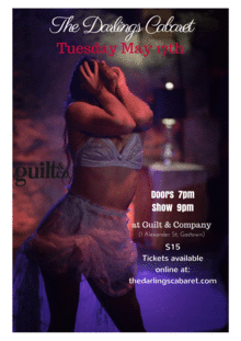 Intimate and Interactive, The Darlings Cabaret combines rock, jazz and indie in their modern cabaret-style show. High-energy, gritty, whimsical, classy, sensual and seductive are all words that describe The Darlings Cabaret. Enticing audiences into its world and leaving them in a haze of excitement. Making audience members continuously coming back for more.