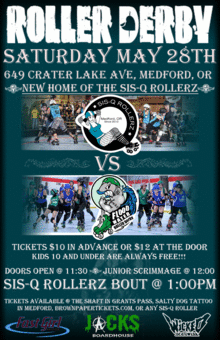The Rogue Skate Cartel junior team will have a scrimmage at 12pm and then the Sis-Q Rollerz will face off against Flood Water Roller Derby.