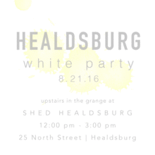 Date : Sunday, August 21st, 2016 Time : 12-3pm Location : The Grange at SHED 25 North St. Healdsburg