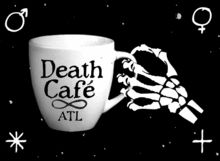 Following in the wake of London's Jon Underwood (who drew upon Bernard Crettaz's "café Mortals"), Death Café arrived in America via Lizzy Miles in 2012. Death Café is now an international movement. It is designed to provide a safe and comfortable setting for people to talk about death while drinking tea and coffee and eating cake. The only objective of a Death Café is "to increase awareness of death with a view to helping people make the most of their (finite) lives." There is no intention of leading participants to any particular conclusion, product, or course of action. Instead, a Death Café provides an open, respectful, and confidential space free of discrimination where people can express and explore their understanding of death safely. As Andy Webster, a hospice chaplain, once said, "Our greatest prejudice is against death. It spans age, gender, and race. We spend immeasurable amount of energy fighting an event that will eventually triumph. Though it is noble not to give in easily, the most alive people I've ever met are those who embrace their death. They love, laugh, and live more fully." Death Café Atlanta is a "social franchise" of Death Café (www.deathcafe.com) as pioneered by Jon Underwood.