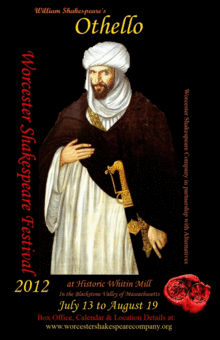 |  | EventWorcester Shakespeare Festival 2012The Worcester Shakespeare Company is pleased to announce the seventh annual Worcester Shakespeare Festival at our new home at the Whitinsville Mill, in cooperation with Alternatives Inc. This year, we offer Shakespeare's tragedy, Othello.