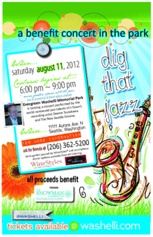 The concert is Saturday, August 11th, 2012 from 6:00pm until 9:00pm. A wine garden, poured by WineStyles, opens at 5:00pm. Wine accompanied by a light fare will be provided. All proceeds will benefit The Snowman Foundation.