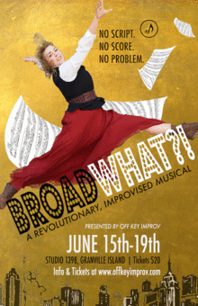 No script? No score? No problem! Local musical improv company, Off Key Improv, is thrilled to announce the premiere of BroadWHAT?! - a tip of their hats to the world of Broadway musicals. Set at the turn of the 19th century and inspired by audience suggestions, BroadWHAT?! is a two act improvised musical exploring classic character-types, songs styles and choreography from favourite musical theatre hits like Les Misérables, Hamilton, Rent, Wicked, Grease, The Sound of Music and more.