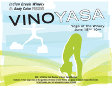 Enjoy a 1 hour long vinyasa flow class in the beautiful gardens of Indian Creek Winery. Relax afterwards with a glass of wine (included). Feel free to bring a picnic lunch!