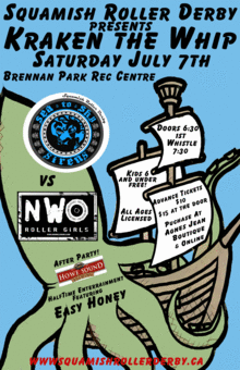 The third in the home season bouts for Squamish sees the Sea To Sky Sirens take on the NWO Roller Girls from Chilliwack. It's going to be a hard hitting action packed bout full of great derby excitement! Doors at 6:30pm and first whistle at 7:30pm. This will be an All Ages event, with Beer Garden hosted by Howe Sound Brewing, Food supplied by Two Birds Eatery, Tunes spinning with DJ Torc, Halftime Entertainment by local band Easy Honey and an after party at the Howe Sound Brew Pub.