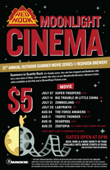 Summers in Seattle Rock! It's finally warm, the rain has stopped and Redhook rolls out a new slate of films and a new lineup of the best local bands. Join us under the stars at our Woodinville Brewery. Moonlight Cinema is now old enough to drink and you should too! Join us every Thursday night beginning in July.