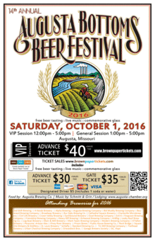 Augusta Bottoms Beer Fest is an annual fund raiser for 3 local a non-for-profit organization help make our community a better place. We average 37+ independent brewers from around the greater St Louis area. The annual Augusta Bottoms Bier Fest is a one day, 5 hour event.