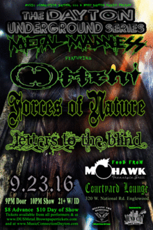 Dayton's underground music scene is putting out killer music, and Music Connection Dayton, LLC created 'The Dayton Underground Series' to showcase some of the best of Dayton area music! For our 6th show, we've gathered some of the best around to bring you a night of brutal, mind-bending, ear-blistering, face-melting METAL MADNESS!