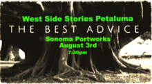 1st Wednesday of every month we get together at Sonoma Portworks to tell some personal narrative stories. People who want to tell a story toss their name in the hat with the hope of being one of the 10 chosen to tell their tale. Those who get picked tell a 5 Minute-True Story based on that evenings theme. August 3rd, the theme is...THE BEST ADVICE At the end of the evening one teller is chosen as the audience favorite and is invited into the GrandSlam in December. It's that simple, really.