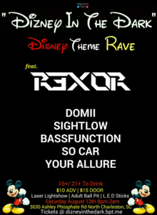 Introducing one of the most anticipated & biggest Disney theme electronic events to take place in Charleston, SC. Join us as we embark to amagical yet dark chapter for a night of bass, upgraded venue L.E.D. illumination & more. Come dressed up & become any of your favorite characters from Disney as we will be raging all night to some of the best electronic artists on the east coast while being in a euphoric state by some of the best production we will be displaying!
