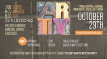 The party of the year is back for 2016!! Join ARTSConnect as we transform the Topeka Capital-Journal's paper warehouse to celebrate the best and brightest of the arts in Topeka! Cool cocktails, incredible dessert and a chance to cheer on the finalists at the coolest event of the year.