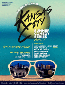The fifth in the series brings us back to the Red Front on Saturday August 20th. This is another chance for you to experience the comedy explosion in KCMO, as we bring another talent laden funky bunch to the stage. This time it's Nick Nichols, Adam Maxwell, Kasey Griffin, Gage Barton, Stephen Taylon, and Jesse Turney, with Nick Manfredi and Evan C. Goldt doing the honors as co emcees. This is what comedy is all about, and how it should be. The comfort of a great lounge, the intimacy of a living room. Just our guys making you laugh til it hurts!