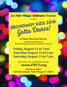 See BROADWAY KIDS at The Center on Main in Falls Village, CT, 06031. Three high-energy performances led by theatre professionals Michael Berkeley and Heather Holohan-Guarnieri and performed by area youth ages 8 - 18. An hour long review featuring singing, dancing, and acting from kids favorite Broadway shows! Doors open 30 minutes prior to for general seating. Concession snacks pre- and post-performances. Thank you for your support!
