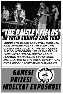 LIVE PERFORMANCES BY: The Paisley Fields (NYC) - www.thepaisleyfields.com The Faggettes (Washington DC) - Cis Jenner, JaxKnife Complex, Salvadora Dali Anna Novak Belladonna Felicia O'Toole The Geppetto & Cindeee Show Hillary Henson Hypnotic Pole Dance Studio Liz P. Curtis Maxwell Treats Sarah Hutchins The Unicorn Ranch