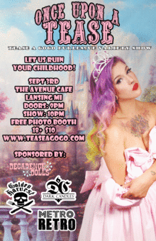 Once Upon a Tease, there was a beautiful kingdom called Lansing MI, the kingdom was threatened by a terribly dragon known as Boredom. Boredom terrorized the good people of Lansing, but then from the forest entered the brave knight known as "Tease A Gogo!" and this knight slaughtered the mean old boredom dragon with glitter, striptease and other hilarious antics. And at last the people were free to have a fabulous naughty evening!