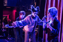 Scarlett Storm The "Mistress of Whimsy" can be recognized by her cotton candy hair and a protective covering of glitter that surrounds her at all times. Her performance style mixes sideshow and burlesque with a sprinkle of WTF. She has been producing, performing and traveling for the last decade bringing touch-funny acts and inspiring fear-boners for audiences across the country. Her life goals include becoming the filthiest woman alive and petting every cat.