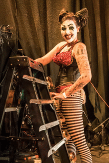 Scarlett and Smurf have recently performed with Suicide Girls Blackheart Burlesque tour, San Francisco's Hubba Hubba Revue, Philly Tattoo Convention and the Southern Sideshow Hootenanny and are currently featured in the March 2016 issue of Hustler magazine. They have also performed and toured with Funny or Die's Oddball tour, Slipknot's Knotfest, Coney Island Rock'n'Roll Road Show, Troma, Cut Throat Freakshow, Squidling Brothers Sideshow and numerous Tattoo and Horror Conventions across the US!!! They are hoping to have performed in every US state by the end of 2016. In addition to live performance, they are also active in a variety of other areas. They have been featured in magazines(Inked, Retro Lovely), clothing catalogs (Sourpuss), music videos, indy horror movies (Dickshark) and your weirdest clown-sex-dreams.