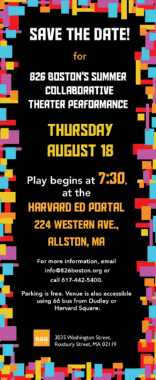 This summer, Boston Public School eighth and ninth grade students worked hard with professional theater artists from the American Repertory Theater and writing mentors from 826 Boston on the fourth WORDplay Theater and Writing Collaborative. They drafted the plays, provided meaningful feedback to their peers, and now will perform on stage in front of an audience.