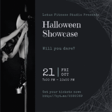 Lotus Fitness Studio presents its annual Halloween Showcase, a fun time for friends, family, studio members, newcomers, and the like to get together for a night of entertainment. Students and instructors showcase their gravity defying skills on pole, silks, and lyra. Performances will include a range of conceptualization from sexy to athletic to downright mesmerizing.