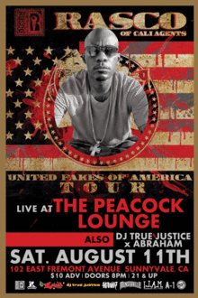 Rasco of the Cali Agents is currently on tour promoting his new album United Fakes Of America. Joining him on this Sunnyvale, CA date are: Equipto, Z-Man, Playa Rae & Trey C + A-1! w/Dj True Justice & Abraham.