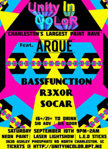 Back by high demand our popular paint raves are back. From ColorStorm to Neon Color Explosion & having 300-500 people at our paint raves, Charleston can`t get enough. Join us for a huge UNITY in color for the last largest paint rave of the year. This will also be the last time to celebrate the summer coming to a end with college & high school kids back to school. Rage all night to some of the best electronic dj artists on the east coast. Invite your friends to the page & wait for the madness! Paint Drops @ Midnight.