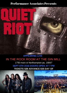 QUIET RIOT is a rock & roll phenomenon. Famously described as the first heavy metal band to top the pop charts, the Los Angeles quartet became an overnight sensation thanks to their monster 1983 smash album Metal Health.