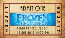 Tickets for the movie are $5/person in advance and interactive Frozen FunPacks are $5 each. (At the door prices are $6/person and $5 for FunPacks.) Seating is reserved so it is best to buy your tickets early!