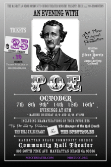 This biographical play highlights the career of one of Americas most beloved writers and delves into 'One Act Plays' of Poe's most famous works. Different individual directors helm each of these vignette's based on the authors best known writings - including: The Raven, The Tell Tale Heart, and the Pit and the Pendulum.