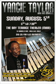 The VJS is proud to present Yancie Taylor & his Quintet on August 5th at the Bay Terrace Theater.