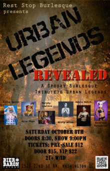 It happened to someone who knows someone you know...Rest Stop Burlesque is bringing your favorite urban legends to life for one night only at the Bier Baron Tavern! We are going to give you a night of horror you will be glad you did turn the light on.