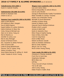 A SPECIAL NOTE TO OUR INDIVIDUAL FAMILY & BUSINESS SPONSORS: