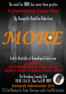 ACTS 3 AND A QUARTER PRODUCTIONS presents "MORE" an inspiring and captivating stage play of Faith, Family and Finances.