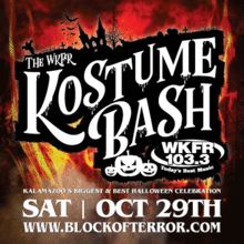 For the ninth year in a row, WKFR is back to sponsor the area's biggest and best costume party. Join Tess Taylor and Will Harvey as they preside over the largest collection of freaks, geeks and spooky monsters in a battle for the coveted $1000 first place costume contest prize. If you've never made it to our Kostume Bash, then prepare for a parade of the most elaborate, funkiest, spookiest and craziest costumes to be found anywhere.