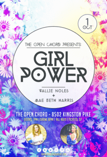 _________________________ More info about the Girl Power series to come! Night 1 (Singer-songwriter): Oct. 1 Night 2 (Alternative/Electro-pop): Nov. 19 Night 3 (Punk/Rock): Dec. 3