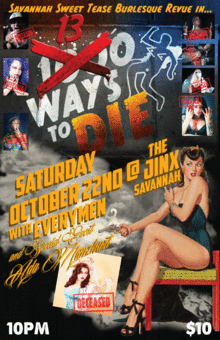 Savannah Sweet Tease presents 13 Ways to Die@ the JINX