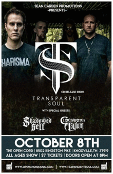 Transparent Soul CD Release show presented by Sean Carden Promotions with special guests: Shadowed Self Clockwork Asylum