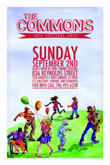 The Commons Jazz Festival 2012 Artist Lineup 6:00pm Augusta's Young Lions with Joel Cruz music in the moment 6:45pm Buzz Clifford (Augusta/Aiken) jazz/blues/R&B fusion 7:30pm Elliott Holden (Atlanta) mixed media/acoustic guitar, rock/pop originals 8:10pm Kickin' Brass (Ft Gordon & beyond) New Orleans music, Mardi Gras-style 9:05pm London Arrington "DIRTYJAZZ" (Atlanta) funk/jazz/soul originals + high-energy and interactive