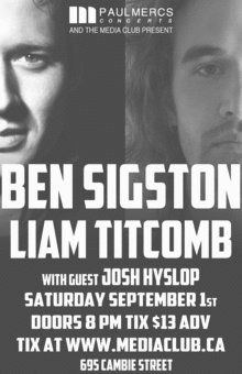 Don't miss an opportunity to see Ben Sigston and Liam Titcomb in an intimate setting on Saturday, September 1st at The Media Club.