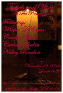 The leaves have changed color, it's getting colder and darker, soon...winter. Tassels and Wine has returned this fall at a new venue. Join us for this intimate show, as we celebrate the fall and new beginnings at the Rendezvous' Jewel Box Theater in the heart of Belltown. Drink in the beauty of live burlesque with our amazing, local performers.